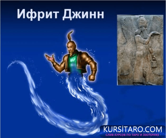 Это заклинание создает в пространстве около хозяина Ифрита - Джинна, исполняющего желания этого хозяина. Джин взаимодействует с сознанием хозяина этого заклинания и реализует его желания.В этой видеосистеме организована как последовательность создания основного заклинания Джинна, так и возможность его усиления на базе построения Наносистем. В этом случае мощность итогового Ифрита многократно увеличивается и контакт заклинания с материальными объектами усиливается.