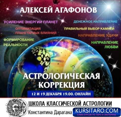 Специально для ШКА К.Дарагна в СПб! 12 и 19 декабря 2018 г. один из наиболее известных и авторитетных астрологов - Алексей Агафонов - прочтет семинар «Астрологическая коррекция».