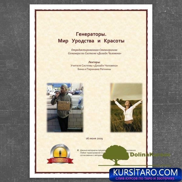 Более того, данный семинар является выдержкой о том, кто такие Генераторы и какова их роль в мире, из всех слоев Системы Дизайна Человека. Начиная от момента прихода в мир, творческой реализации, выражением своего потенциала в таких трансперсональных формах как Пента и Ва, и заканчивая финальным шоу жизни – стадиями Бардо.