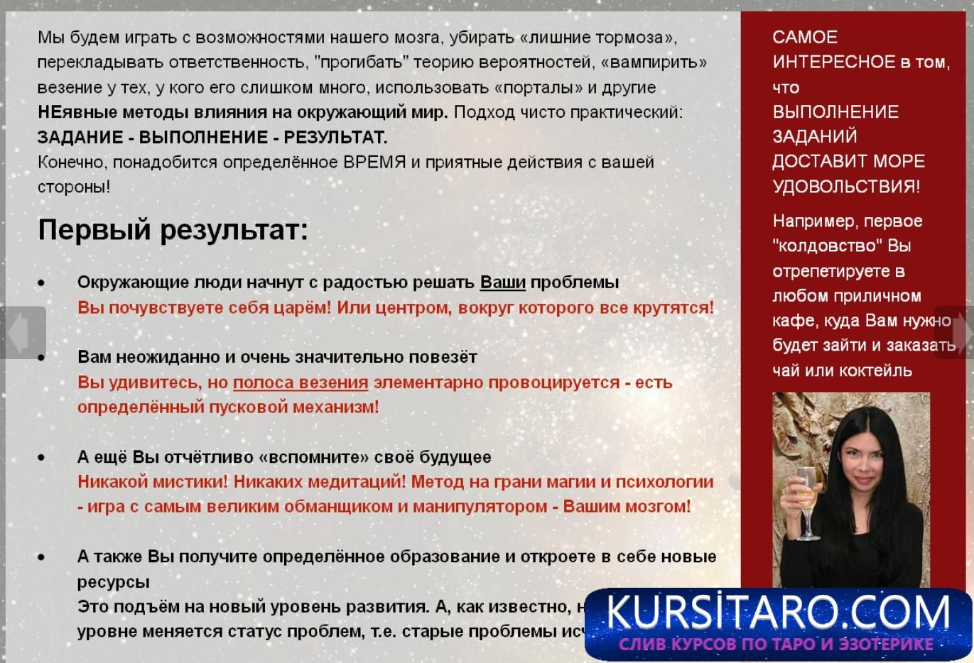 На занятии мы задействуем самые загадочные возможности мозга. Жизнь идёт по спирали, а теперь представьте, что Вам внедрили в память некое выдуманное событие, которое закрутит спиральку по-новому.