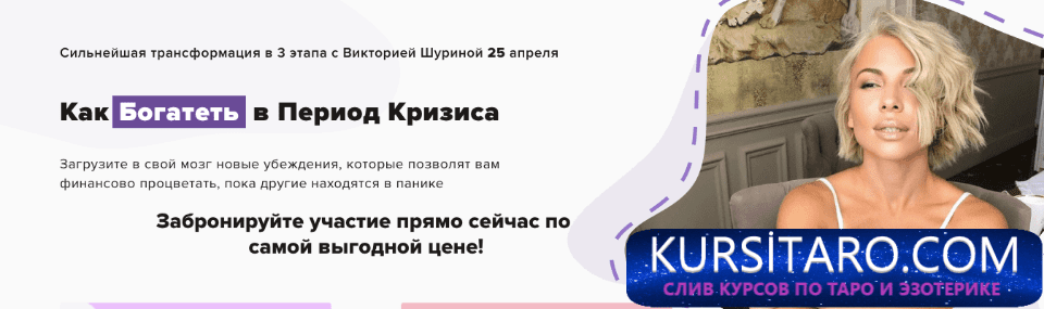 - Вы сделаете технику для привлечения денег в условиях кризиса, поймете как увеличить свой доход и обеспечить будущее семьи.
