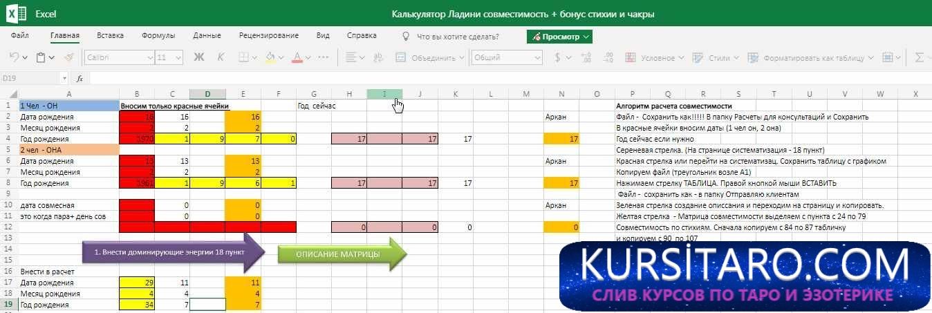 Научитесь рассчитывать, матрицу совместимости и создавать описания совместимости по Матрице жизни