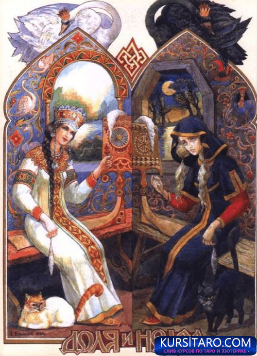 В данной практике идёт работа с богинями Долей и Макошь.