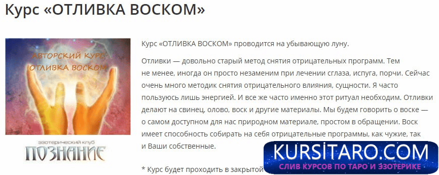 Курс «ОТЛИВКА ВОСКОМ» проводится на убывающую луну.