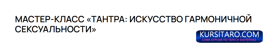 Этот мастер-класс поможет раскрыть вашу сексуальность. Вы проживете магию Тантры, где Сила вашей природы не подавляется, а используется во благо гармоничного развития.