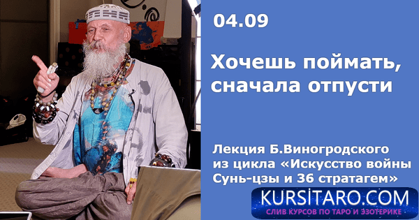 4 сентября Бронислав Виногродский расскажет о стратагеме картежных шулеров «Хочешь поймать, сначала отпусти». Если противника преследуют по пятам, он собирает последние силы, пытаясь спастись. Но если ему оставить выход, его напряжение и боевой дух ослабнут и он сделается легкой добычей. Так можно избежать большого кровопролития.