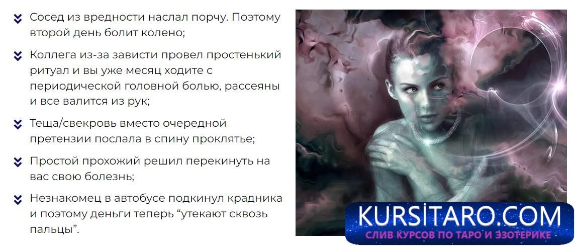 - Коллега из-за зависти провел простенький ритуал и вы уже месяц ходите с периодической головной болью, рассеяны и все валится из рук;