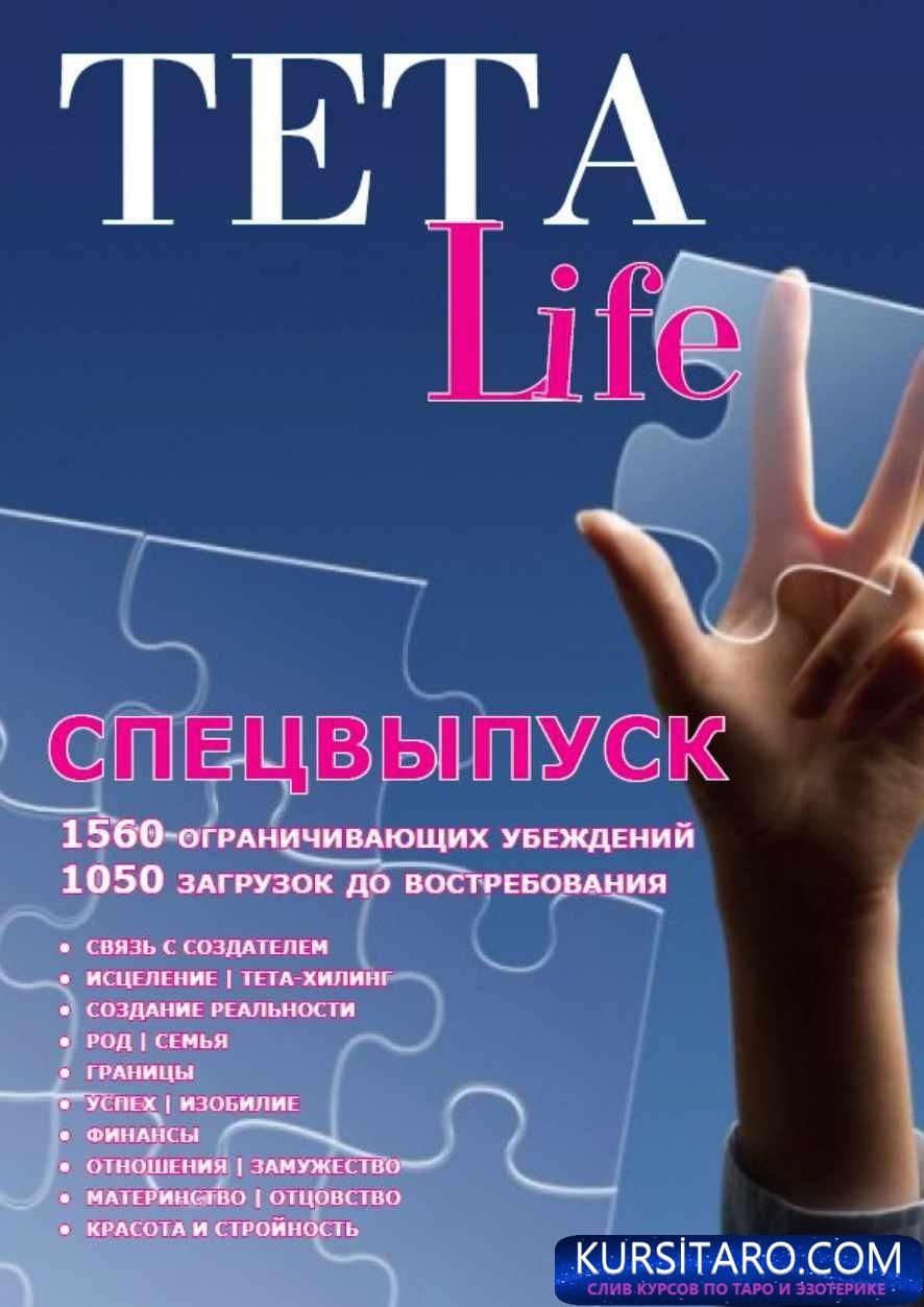 Журнал «TETA-Life» предлагает вам уникальный сборник из более полутора тысяч (!!!) ограничивающих убеждений и более тысячи загрузок, переданных до востребования (то есть вам даже не нужно их грузить, просто согласиться на принятие) по следующим темам:Связь с СоздателемИсцеление, тета-хилинг сессииСоздание реальности | жизнь на 3 планеРод, семьяГраницыУспех, изобилиеФинансыОтношения, замужествоМатеринство | отцовствоКрасота и стройность