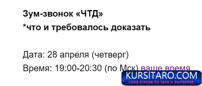 Продажа Зум-звонок «ЧТД» (Марина Кульпина)