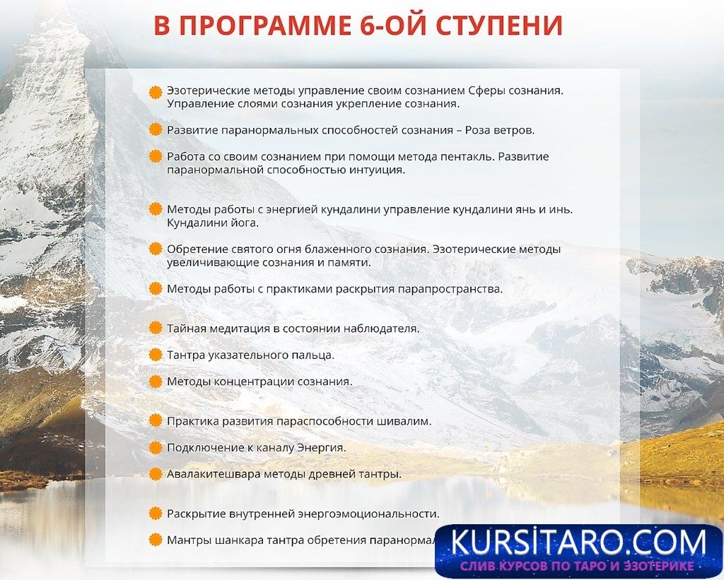 Шестая ступень открывает сверхспособности. Здесь же учим руководить этими сверхспособностями. Эта ступень полностью энергетическая. Во время ее прохождения делаются подключения к каналам, сложнейшие техники визуализации.