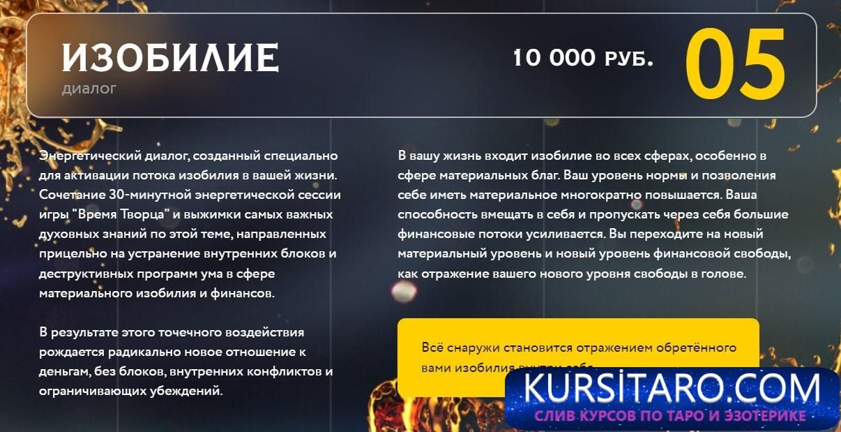 Энергетический диалог, созданный специально для активации потока изобилия в вашей жизни. Сочетание 30-минутной энергетической сессии игры "Время Творца" и выжимки самых важных духовных знаний по этой теме, направленных прицельно на устранение внутренних блоков и деструктивных программ ума в сфере материального изобилия и финансов.