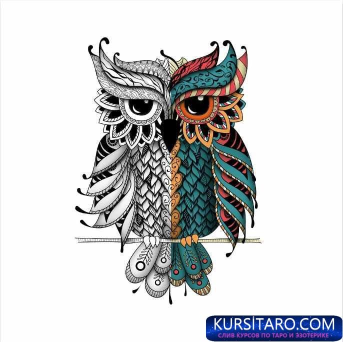 Набор из 6 иллюстрации Совы в стиле Zentangl и dudling. Раскраски для взрослых, медитативные раскраски. Рисование вручную. Полуцветный. Включая черно-белые иллюстрации и различные цветовые варианты.