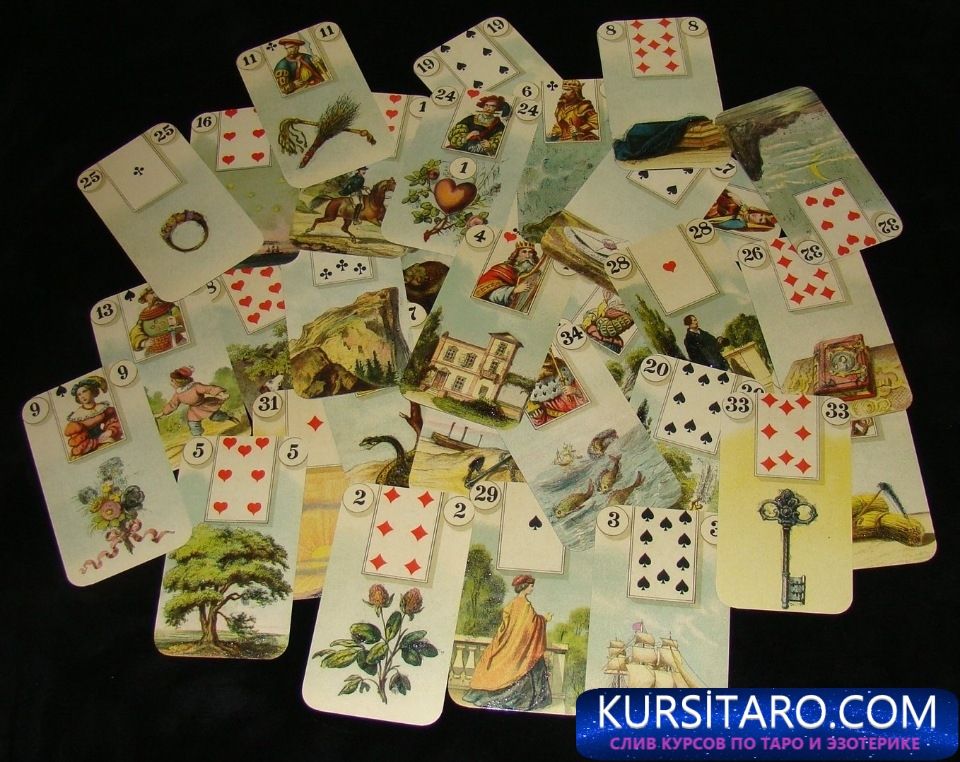 в этом видео курсе я рассматриваю значения карт Ленорман в раскладах на судьбу, в таких раскладах как:
