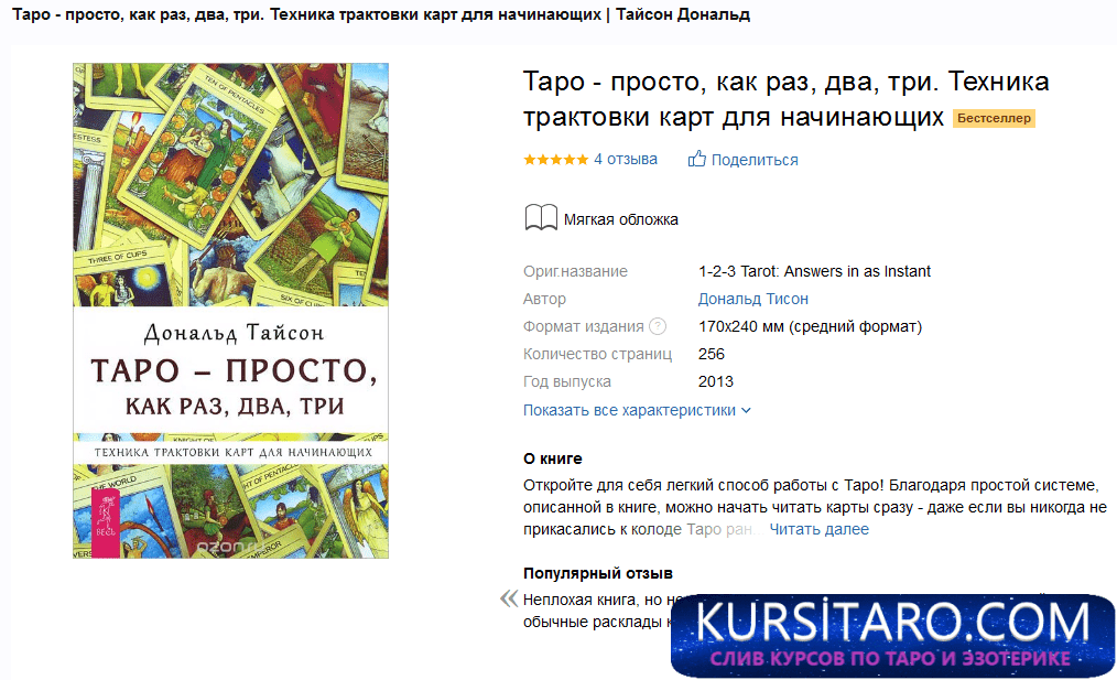 Если вы отдаете предпочтение точным наукам и четко выверенным методикам или просто не готовы заучивать значения и длинные описания карт, если хотите приступить к процессу гадания сразу - то книга Дональда Тайсона будет для вас отличным подарком.