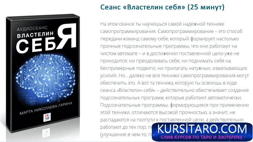 В каждом сеансе содержится обращение к твоему подсознанию и передается одна или сразу несколько конкретных команд, обязывающих твое подсознание: